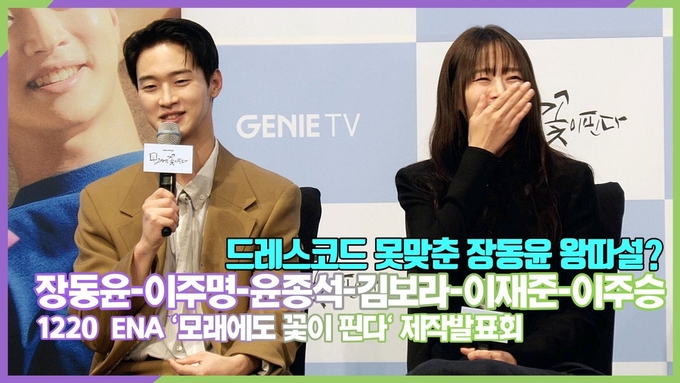 [뉴스인스타 양철수기자] 12월 20일(수) 오후, 서울시 구로구 신도림 디큐브시티 더 세인트에서 ENA 새 수목드라마 '모래에도 꽃이 핀다' 제작발표회가 열려 배우 장동윤, 이주명, 윤종석, 김보라, 이재준, 이주승이 공동 인터뷰를 진행하고 있다.