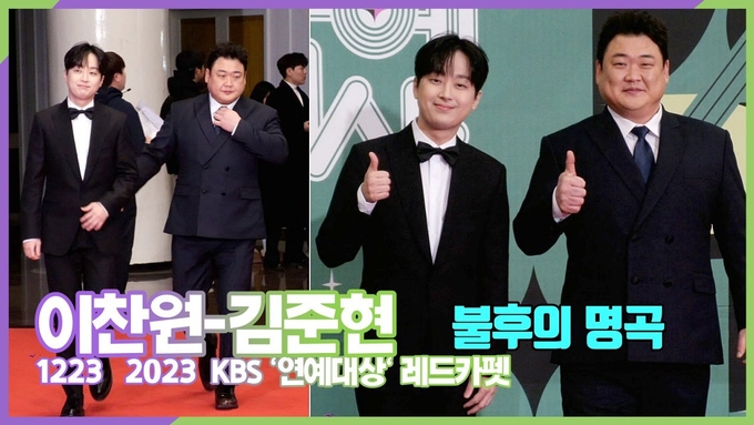 [뉴스인스타 양철수기자] 12월 23일(토) 오후, 서울시 영등포구 여의도 KBS 신관 공개홀에서 진행되는 '2023 KBS 연예대상'에 레드카펫에서 KBS2 예능 '불후의 명곡' 이찬원-김준현이 참석해 포토타임을 갖고 있다,