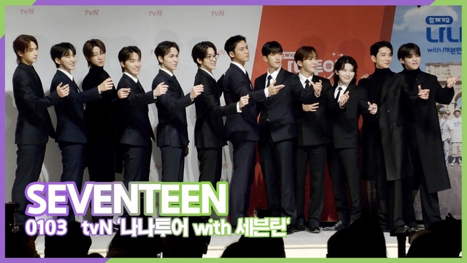 [뉴스인스타 양철수기자] 1월 3일(수) 오후, 서울시 강남구 논현동 엘리에나호텔에서 진행된 tvN '나나투어 with 세븐틴' 제작발표회가 열려 그룹 세븐틴(SEVENTEEN) 에스쿱스, 조슈아, 준, 호시, 원우, 우지, 디에잇, 민규, 도겸, 승관, 버논, 디노가 참석해 포토타임을 갖고 있다.