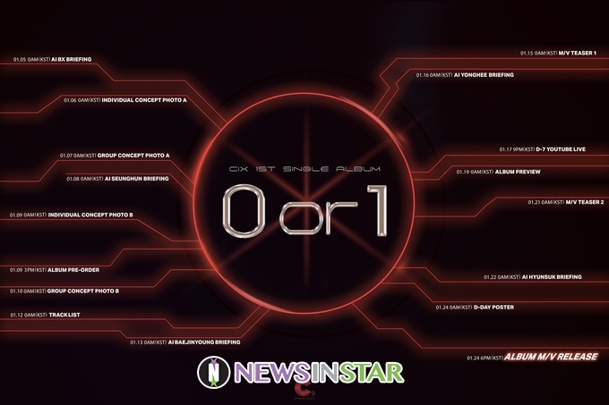 오늘(4일) 0시 CIX 공식 SNS를 통해 '0 or 1'의 앨범명과 발매일시가 처음으로 공개됐다. 의미심장한 앨범명과 감각적인 타임테이블 이미지가 CIX의 새로운 콘셉트를 향한 궁금증을 고조시킨다.