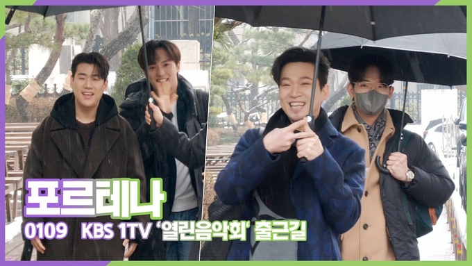 [뉴스인스타 양철수기자] 1월 9일(화) 오후, 서울시 영등포구 여의도 KBS 홀에서 진행되는 KBS 1TV '열린음악회' 출연을 위해 크로스오버 그룹 포르테나(Fortena) 이동규(카운터테너), 오스틴킴(콘트랄토), 서영택(레쩨로테너), 김성현(리릭테너)이 출근하고 있다.