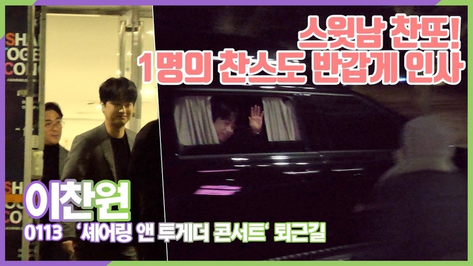 [뉴스인스타 양철수기자] 1월 13일(토) 오후, 서울시 송파구 올림픽공원 핸드볼경기장에서 진행되는 셰어링 앤 투게더 콘서트에 출연하기 위해 가수 이찬원이 퇴근하고 있다.