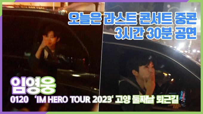 [뉴스인스타 양철수기자] 1월 20일(토) 오후, 경기도 고양시 일산서구 킨텍스 제1전시장에서 진행되는 임영웅 단독 콘서트 'IM HERO TOUR 2023' 고양 둘째날 공연을 마치고 퇴근하고 있다.