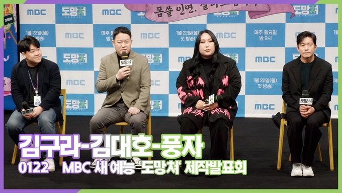 [뉴스인스타 양철수기자] 1월 22일(월) 오후, 서울시 마포구 상암동 MBC 사옥에서 MBC 새 예능 '도망쳐' 손절 대행 서비스 제작발표회가 열려 MC 김구라, 김대호, 풍자가 참석해 공동 인터뷰를 진행하고 있다.