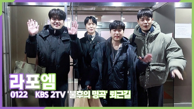 [뉴스인스타 양철수기자] 1월 22일(월) 오후, 서울시 영등포구 여의도 KBS 공개홀에서 진행된 KBS 2TV '불후의 명곡' 녹화를 마치고 그룹 라포엠(LA POEM) 박기훈, 유채훈, 정민성, 최성훈이 방송국을 나서고 있다.