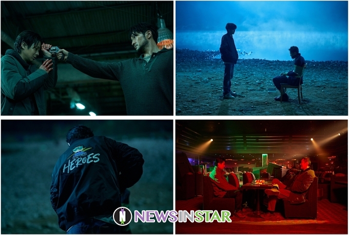 공개된 보도스틸은 시청자들을 매 순간 딜레마에 빠뜨릴 이탕, 장난감, 송촌의 범상치 않은 아우라로 시선을 빼앗는다. 우발적 살인 후 혼란에 빠진 이탕, 집을 나와 거리를 헤매는 그의 위태로운 얼굴은 무료하고 평범한 일상을 송두리째 뒤흔든 격변을 짐작게한다. 점퍼에 새겨진 ‘히어로즈’ 로고는 그가 선택한 운명을 더욱 궁금하게 한다. 이탕에게서 수상함을 감지한 장난감 형사의 예사롭지 않은 눈빛도 포착됐다. 무엇보다 이탕에게 총구를 겨누는 날 선 장난감의 모습은 긴장감을 고조시킨다. 그런가하면 이탕과 장난감 형사를 쫓는 송촌의 광기는 소름을 유발한다. 거칠고 기괴한 얼굴은 무자비한 면모, 그리고 그가 지나온 험난한 시간을 짐작게한다. 비틀린 신념을 가진 송촌의 등판과 함께 사건은 걷잡을 수 없는 방향으로 흘러간다고. 과연 전직형사 송촌이 왜 이탕과 장난감 형사를 쫓는 것일지 궁금증을 자아낸다.