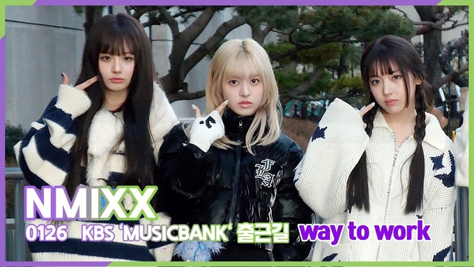 [뉴스인스타 양철수기자] 1월 25일(금) 오전, 서울시 영등포구 여의도 KBS 신관 공개홀에서 진행되는 KBS ‘뮤직뱅크’ 리허설을 위해 그룹 NMIXX(엔믹스) 엔믹스 릴리, 해원, 설윤, 지니, 배이, 지우, 규진이 방송국에 도착해 포즈를 취하고 있다.