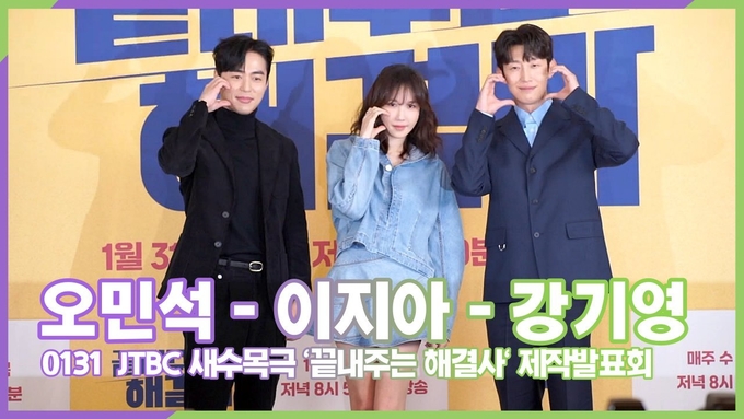 [뉴스인스타 양철수기자] 1월 31일(수) 오후, 서울시 마포구 상암동 스탠포드 호텔에서 JTBC 새 수목드라마 ‘끝내주는 해결사’(극본 정희선/연출 박진석) 제작발표회가 열려 배우 이지아, 강기영, 오민석이 참석해 포즈를 취하고 있다.