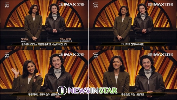 티모시 샬라메와 젠데이아가 한국 관객들을 위해 새해 인사를 전해 화제를 모은 영화 <듄: 파트2>는 오는 2월 28일(수) 국내 개봉한다.