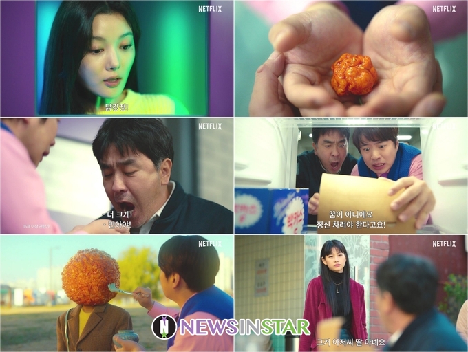 기발하고 독특한 발상으로 주목을 받고 있는 넷플릭스 시리즈 <닭강정>이 오는 3월 15일(금) 넷플릭스를 통해 전 세계 시청자들과 만난다. <닭강정>은 의문의 기계에 들어갔다가 닭강정으로 변한 딸 민아(김유정)를 되돌리기 위한 아빠 선만(류승룡)과 그녀를 짝사랑하는 백중(안재홍)의 신계(鷄)념 코믹 미스터리 추적극이다.