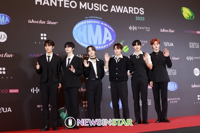 [뉴스인스타 양철수기자]. 2월 17일(토) 오후, 서울시 중구 동대문디자인플라자(DDP)에서 '31주년 한터뮤직어워즈 2023' 행사가 열려 그룹 저스트비(JUST B) 임지민, 이건우, 배인, JM, 전도염, 김상우가 식전행사인 레드카펫에 참석해 포토타임을 갖고 있다.