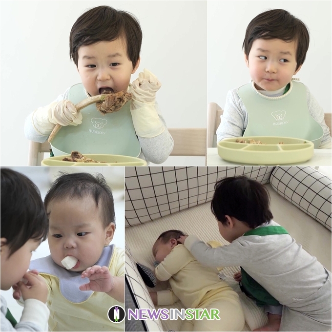 또한 은우는 동생 정우를 향해 갈수록 발전하는 사랑꾼 면모를 펼친다. 김준호가 정우를 재우려고 하자 이를 함께 도운 것. 은우는 정우를 품에 안고 있어 정우의 모습을 보지 못하는 김준호를 위해 “이쪽 눈 떠 있지. 이쪽 눈도 떠 있지”라고 말하며 정우의 상태를 실시간 모니터링해주는 것은 물론, 정우가 자지 않자 “은우가 재울게”라며 든든한 형아미를 뽐낸다. 은우는 정우의 등을 조심스럽게 토닥토닥 두들겨주고, 정우가 침대 밖으로 나가려고 하자 “위험해”라며 정우의 안전을 철두철미하게 지키며 든든한 보디가드가 되어준다는 전언이다.