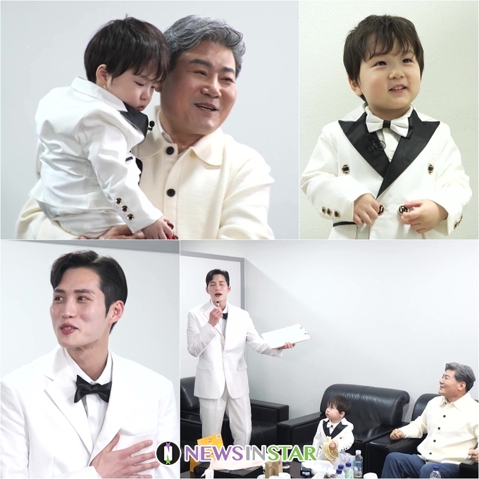 이날 김준호와 은우는 진성을 만나기 위해 올 화이트 수트를 장착해 트롯 유닛 같은 비주얼로 진성의 대기실을 찾는다. 은우는 진성과의 첫 만남에 돌연 “안아줘”라며 낯가림을 단숨에 해제하며 돌직구 매력으로 진성을 홀린다. 이에 진성은 “(내가) 얼굴이 커서 아이들이 놀라는 경우가 많은데 은우는 낯을 안 가리네. 크게 될 인물이야”라며 은우의 남다른 떡잎을 칭찬해 웃음을 선사한다. 또한 진성은 “태어날 때부터 금(메달)수저인데, 네 인생에 누가 태클을 걸겠냐”라며 자신의 노래 제목을 활용한 재치 있는 입담을 전한다. 은우는 진성이 건네는 딸기 과자를 먹으며 알콩달콩한 분위기를 자아내 흐뭇함을 전할 예정이다.