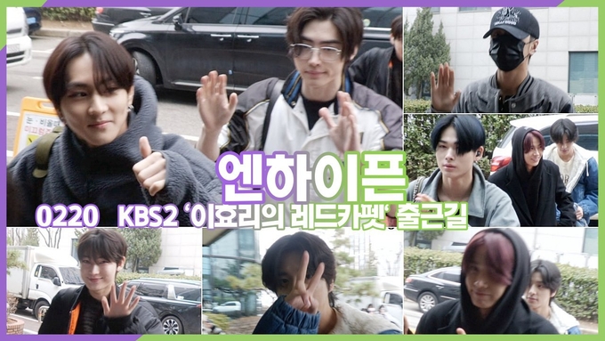 [뉴스인스타 양철수기자] 2월20일(화) 오후, 서울시 영등포구 여의도 KBS 신관 공개홀에서 진행되는 KBS '더 시즌즈 - 이효리의 레드카펫' 출연을 위해 그룹 ENHYPEN(엔하이픈) 정원, 희승, 제이, 제이크, 성훈, 선우, 니키가 방송국에 도착해 포즈를 취하고 있다.