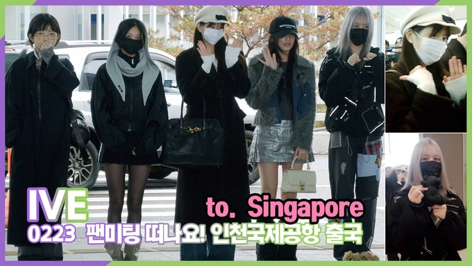 [뉴스인스타 양철수기자]  2월 23일(금) 오전, 인천광역시 중구 운서동 인천국제공항 제2터미널에서 그룹 아이브(IVE) 가을, 장원영, 리즈, 이서, 레이가 팬미팅을 위해 싱가포르로 출국하고 있다.