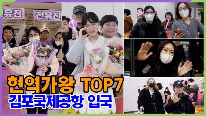 [뉴스인스타 양철수기자] 2월 25일(일) 오후, 서울시 강서구 방화동 김포국제공항 국제선터미널에서 MBN '현역가왕' TOP7 전유진, 마이진, 김다현, 린, 박혜신, 마리아, 별사랑이 '트롯걸인재팬' 결승전 스페셜 무대와 도쿄 시부야 이나바리바시 광장에서 버스킹을 하고 일본에서 입국하고 있다.