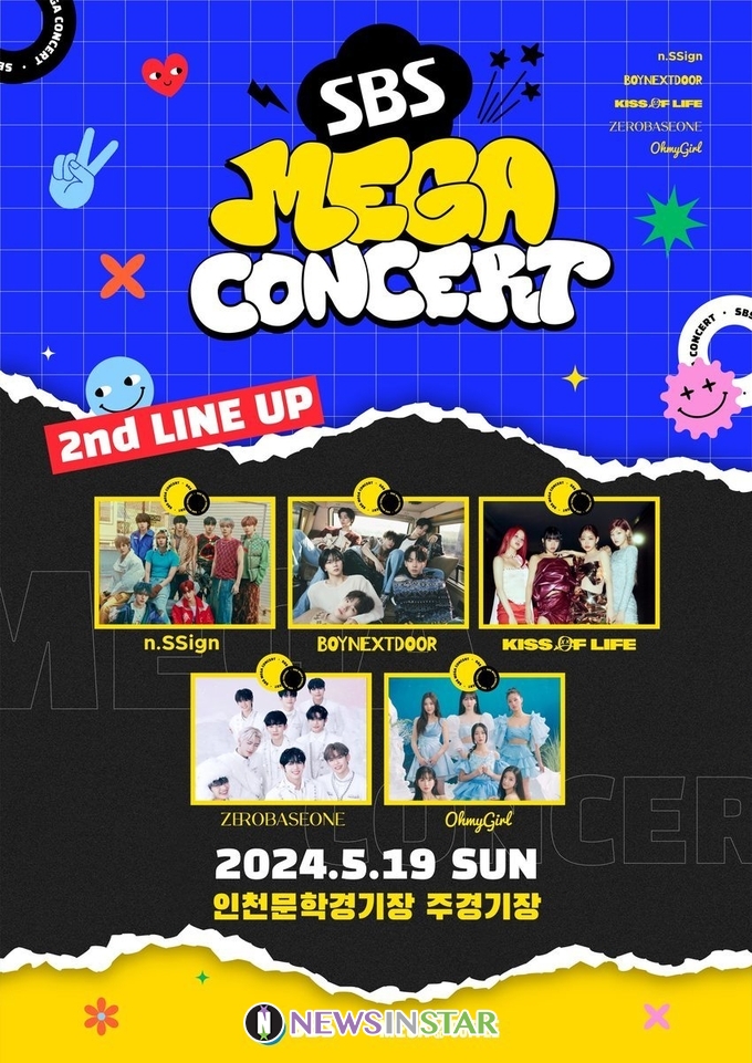 SBS는 5월 19일 인천문학경기장 주경기장에서 개최되는 'SBS MEGA 콘서트'의 2차 라인업을 공개했다. 차세대 대표 남돌 ‘제로베이스원’과 3세대 대표 걸그룹 ‘오마이걸’이' SBS MEGA 콘서트'무대에 설 예정이다.