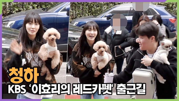 [뉴스인스타 양철수기자] 3월 12일(화) 오후, 서울시 영등포구 여의도 KBS TV공개홀에서 진행되는 KBS2 예능 '더 시즌즈 - 이효리의 레드카펫' 출연을 위해 가수 청하가 반려견 밤비, 아란과 방송국에 도착하고 있다.