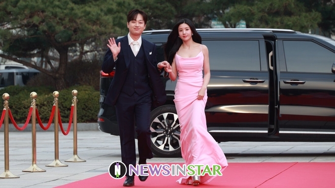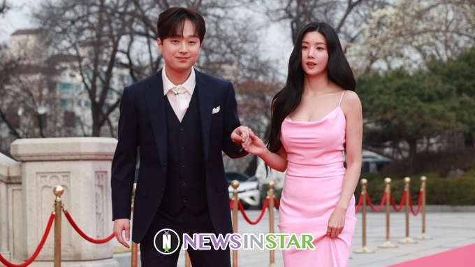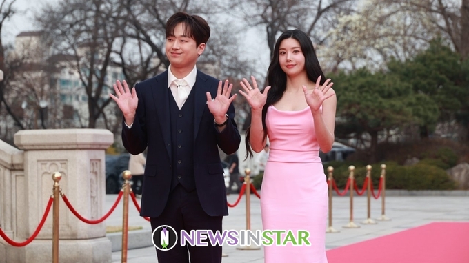 [뉴스인스타 양철수기자] 3월 27일(수) 오후, 서울시 동대문구 회기동 경희대학교 평화의 전당에서 2024 유니버셜 슈퍼스타 어워즈(Universal Superstar Awards·2024 USA)가 열려 MC 이찬원, 권인비가 레드카펫에서 포즈를 취하고 있다.