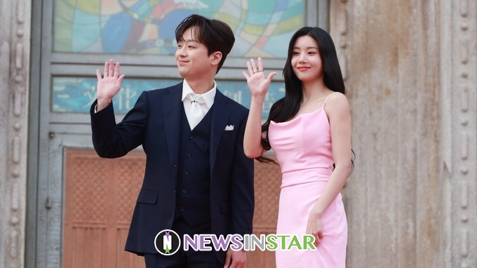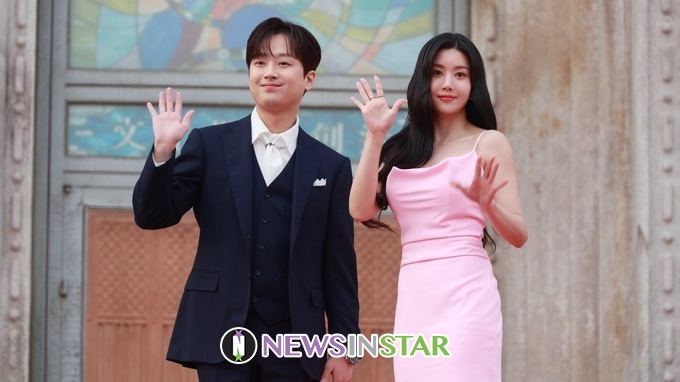 [뉴스인스타 양철수기자] 3월 27일(수) 오후, 서울시 동대문구 회기동 경희대학교 평화의 전당에서 2024 유니버셜 슈퍼스타 어워즈(Universal Superstar Awards·2024 USA)가 열려 MC 이찬원, 권은비가 레드카펫에서 포즈를 취하고 있다.