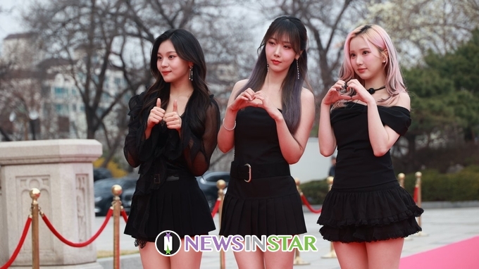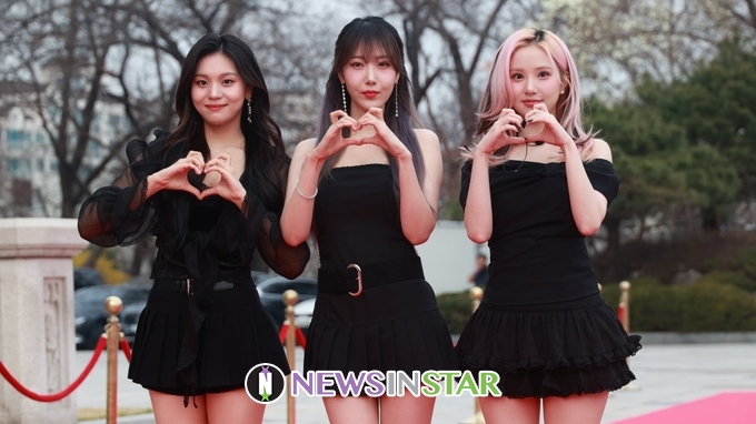[뉴스인스타 양철수기자] 3월 27일(수) 오후, 서울시 동대문구 회기동 경희대학교 평화의 전당에서 2024 유니버셜 슈퍼스타 어워즈(Universal Superstar Awards·2024 USA)가 열려 그룹 비비지가 레드카펫에서 포즈를 취하고 있다.