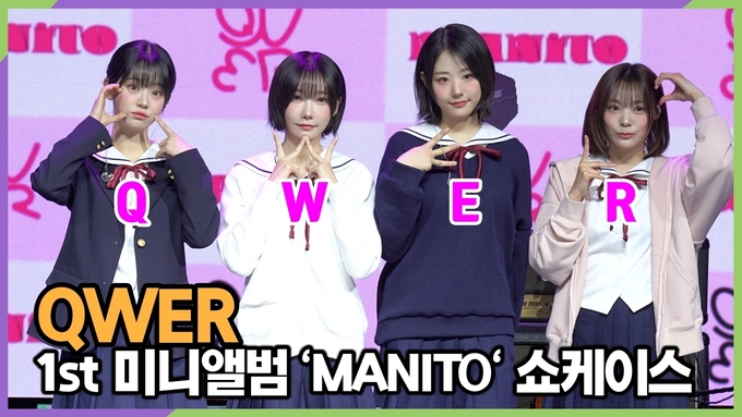 [뉴스인스타 양철수기자] 4월 1일(월) 오전, 서울시 서대문구 창천동 예스24 원더로크홀에서 밴드 QWER(큐더블유이알)의 첫번째 미니 앨범 'MANITO(마니또)' 발매 기념 미디어 쇼케이스가 열려 쵸단 (드럼, 서브보컬), 마젠타 (베이스), 히나 (기타, 키보드), 시연 (보컬, 기타)이 포토타임을 갖고 있다.