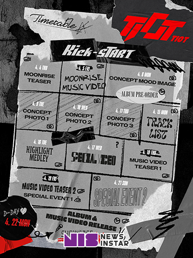 티아이오티(김민성, 금준현, 홍건희, 최우진, 신예찬)는 2일 0시 공식 SNS를 통해 데뷔앨범 'Kick-START (킥-스타트)'의 타임테이블 이미지를 공개했다.