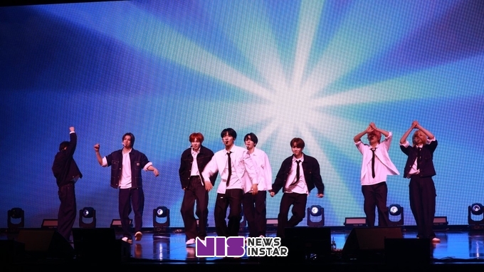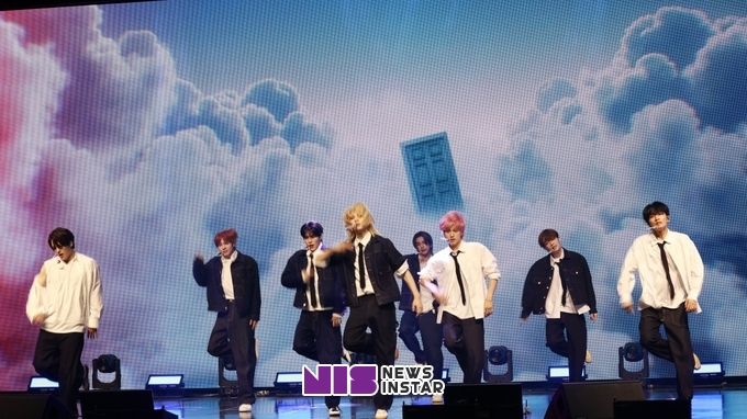 [뉴스인스타 양철수기자] 4월 9일(화) 오후, 서울시 용산구 한남동 블루스퀘어에서 그룹 이펙스(EPEX)의 첫 번째 정규앨범 '소화(韶華) 1장 : 청춘 시절' 발매 기념 미디어 쇼케이스가 열려 위시, 금동현, 뮤, 아민, 백승, 에이든, 예왕, 제프가 참석해 타이틀곡 '청춘에게' 무대를 선보이고 있다.