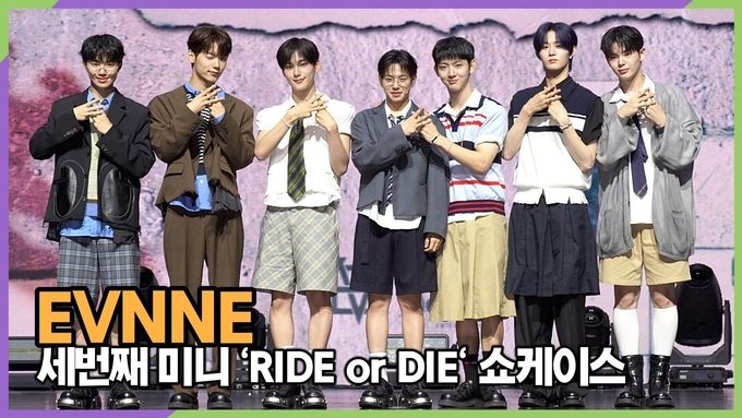 [뉴스인스타 양철수기자] 그룹 이븐(EVNNE)이 6월 17일(월) 오후, 서울시 광진구 광장동 예스24 라이브홀에서 세번째 미니앨범 ‘라이드 오어 다이(RIDE or DIE)' 발매 기념 쇼케이스를 열어 케이타, 박한빈, 이정현, 유승언, 지윤서, 문정현, 박지후가 참석해 포토타임을 갖고 있다.
