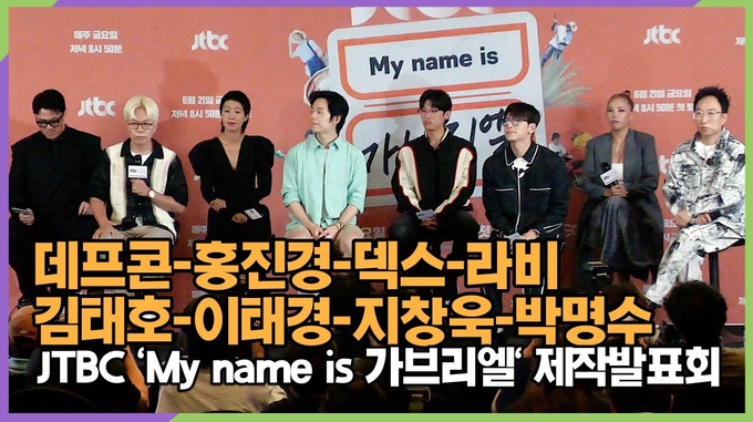 [뉴스인스타 양철수기자] 6월 20일(목) 오후, 서울시 마포구 상암동 스탠포드호텔 서울에서 JTBC 신규 예능 프로그램 'My name is 가브리엘'의 제작발표회가 열려 김태호, 이태경 PD, 박명수, 홍진경, 지창욱, 덱스, 가비가 참석해 포토타임을 갖고 있다.