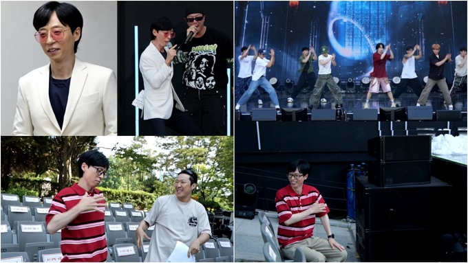 이어 유재석은 축제 단장이자 MC로 활약하며 ‘우리들의 축제’를 이끈다. 오전 일찍부터 시작된 리허설에 참석한 유재석은 하하와 함께 가수들에게 응원을 보내면서 힘을 불어넣는다고. 또 좌석을 돌아다니며 음향 체크를 하고, 무더워진 날씨에 관객들이 덥지는 않을지 걱정하며 세심하게 관객들을 맞을 준비를 한다.