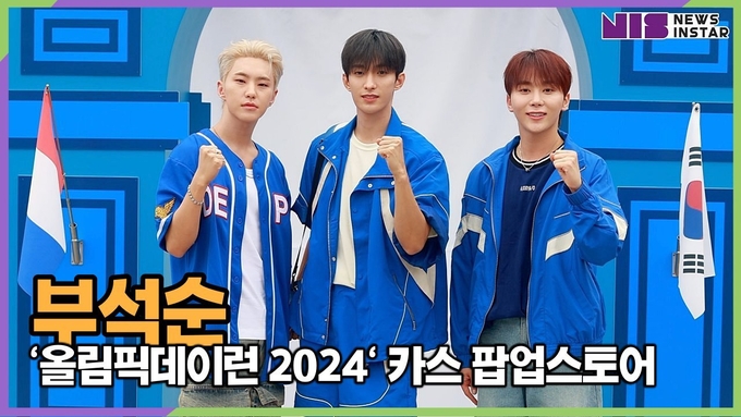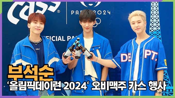 [뉴스인스타 양철수기자] 6월 23일(일) 오전, 서울시 송파구 올림픽공원 평화의 광장에서 대한체육회가 주관하는 '올림픽데이런 2024' 행사내 오비맥주 카스 부스에 그룹 세븐틴 스페셜 유닛 부석순(승곤, 도겸, 호시)이 참석해 포토타임을 갖고 있다.
