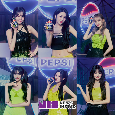 공개된 이미지에서 아이브 멤버들은 펩시의 제로 슈거 라임향을 연상시키는 상큼한 라임 컬러 의상을 입고 스타일리시한 매력을 발산했다.