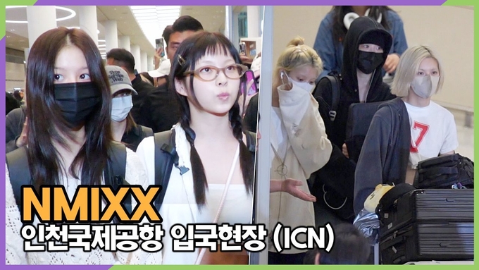 [뉴스인스타 양철수기자] 7월 16일(수) 오후, 인천광역시 중구 운서동 그룹 NMIXX(엔믹스) 릴리, 해원, 설윤, 배이, 지우, 규진이 음악 축제 'BST(브리티시서머타임) 하이드파크'를 마치고 런던에서 귀국하고 있다.