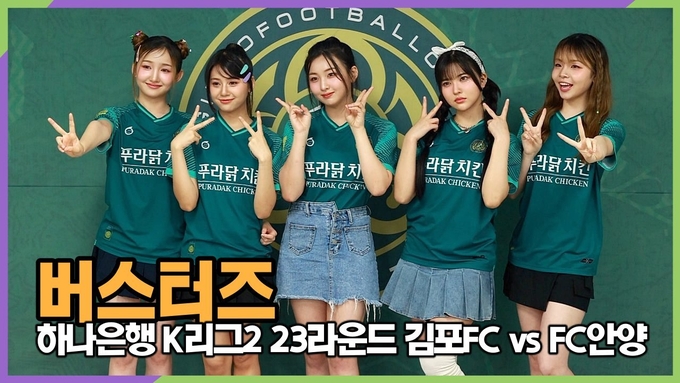 [뉴스인스타 양철수기자] 7월 21일(일) 오후, 경기도 김포시 마산동 솔터축구장에서 김포FC와 FC안양의 하나은행 K리그2 2024 23라운드 열려 그룹 버스터즈(BUSTERS)가 하프타임 쇼를 준비하며 포토타임을 갖고 있다.