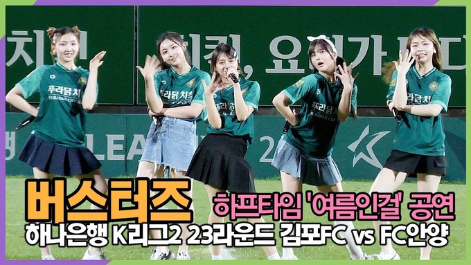 [뉴스인스타 양철수기자] 7월 21일(일) 오후, 경기도 김포시 마산동 솔터축구장에서 김포FC와 FC안양의 하나은행 K리그2 2024 23라운드 열려 그룹 버스터즈(BUSTERS)가 하프타임에 '여름인걸' 공연을 선보이고 있다.