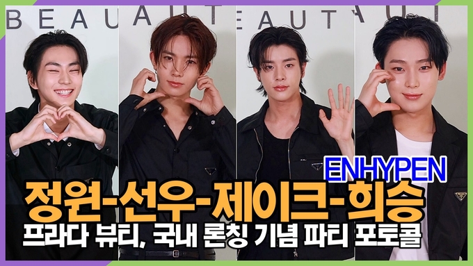[뉴스인스타 양철수기자] 9월 11일(수) 오후, 서울시 용산구 용산동 더리버(The RIVER)에서 프라다 뷰티 국내 론칭 기념 파티 행사가 열려 그룹 엔하이픈(ENHYPEN) 정원, 선우, 희승, 제이크가 참석해 포토타임을 갖고 있다.