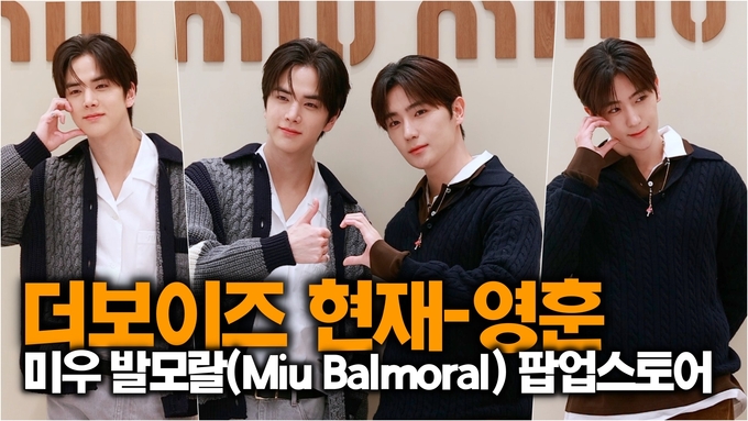 [뉴스인스타 양철수기자] 10월 11일(금) 오후, 서울시 영등포구 여의도 더현대 서울에서 미우미우의 '미우 발모랄(Miu Balmoral)' 팝업 스토어 오픈 행사가 열려 그룹 더보이즈 영훈-현재가 참석해 포토타임을 갖고 있다.