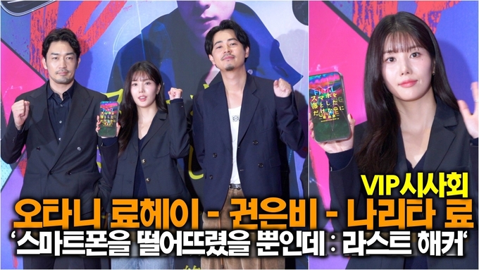 [뉴스인스타 양철수기자] 10월 18일(금) 오전, 서울시 강남구 삼성동 메가박스 코엑스에서 영화 '스마트폰을 떨어뜨렸을 뿐인데: 라스트 해커' VIP 시사회가 열려 배우 오타니 료헤이, 권은비, 나리타 료, 나카타 히데오 감독이 참석해 포토타임을 갖고 있다.