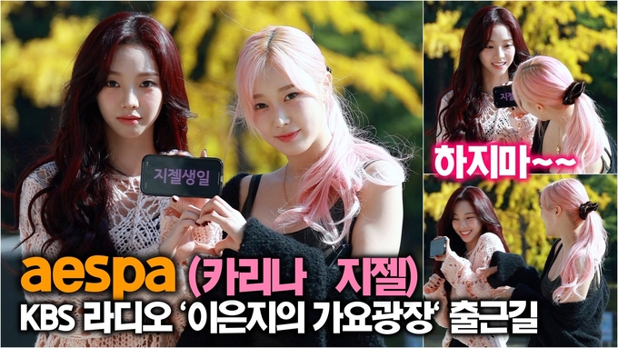 [뉴스인스타 양철수기자] 10월 30일(수) 오후, 서울시 영등포구 여의도 KBS 본관에서 진행되는 KBS라디오 '이은지의 가요광장'에 출연하기 위해 그룹 aespa(에스파) 카리나, 지젤이 방송국에 도착해 포즈를 취하고 있다.
