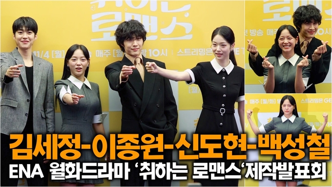 [뉴스인스타 양철수기자] 11월 4일(월) 오후, 서울시 마포구 상암동 스탠포드 호텔에서 ENA 새 월화드라마 '취하는 로맨스' 제작발표회가 열려 배우 김세정, 이종원, 신도현, 백성철이 참석해 포토타임을 갖고 있다.