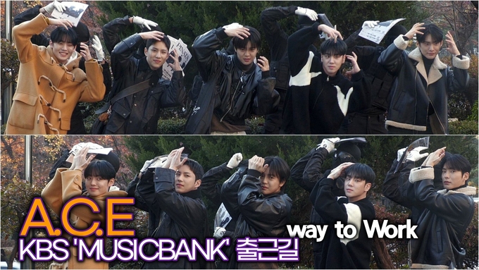 [뉴스인스타 양철수기자] 11월 22일(금) 오전, 서울시 영등포구 여의도 KBS 별관 공개홀에서 생방송으로 진행되는 KBS '뮤직뱅크' 리허설을 위해 그룹 에이스(A.C.E) 박준희, 이동훈, 와우, 김병관, 강유찬이 방송국에 도착해 포즈를 취하고 있다.