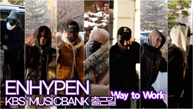 [뉴스인스타 양철수기자] 11월 29일(금) 오후, 서울시 영등포구 여의도 KBS 별관 공개홀에서 생방송으로 진행되는 KBS '뮤직뱅크' 리허설을 위해 그룹 ENHYPEN(엔하이픈) 정원, 희승, 제이, 제이크, 성훈, 선우, 니키가 방송국에 도착해 포즈를 취하고 있다.