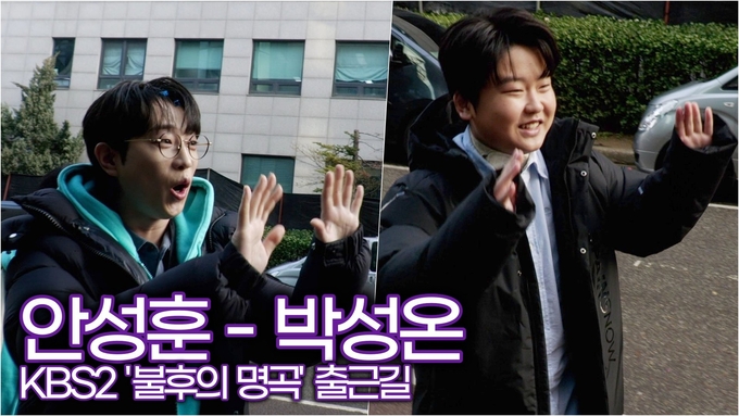[뉴스인스타 양철수기자] 12월 2일(월) 오후, 서울시 영등포구 여의도동 KBS 신관 TV공개홀에서 진행되는 KBS 2TV '불후의 명곡' 2024 오 마이 스타 특집 녹화를 위해 가수 안성훈, 박성온이 방송국에 도착해 팬들에게 인사를 하고 있다.