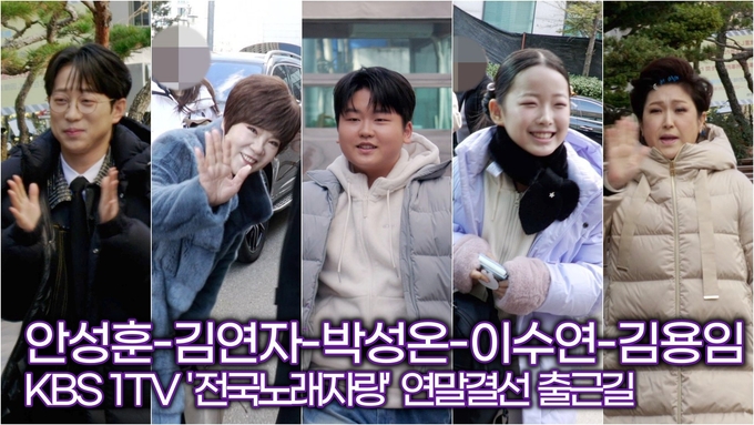 [뉴스인스타 양철수기자] 12월 15일(일) 오후, 서울시 영등포구 여의도 KBS홀에서 진행되는 KBS '전국 노래자랑' 연말결선 녹화를 위해 가수 김연자, 김용임, 안성훈, 박성온, 이수연이 방송국에 도착하고 있다.