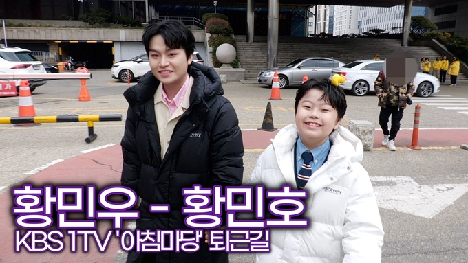 [뉴스인스타 양철수기자] 12월 20일(금) 오전, 서울시 영등포구 여의도 KBS에서 진행된 KBS 1TV ‘아침마당' 쌍쌍파티 생방송 출연을 마치고 가수 황민우, 황민호 형제가 방송국을 나서며 포즈를 취하고 있다.