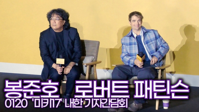 [뉴스인스타 양철수기자] 1월 20일(월) 오전, 서울시 용산구 CGV 용산아이파크몰에서 영화 ‘미키17’ 푸티지 시사 & 기자간담회가 열려 감독 봉준호, 배우 로버트 패틴슨이 참석해 공통 인터뷰를 진행하고 있다.