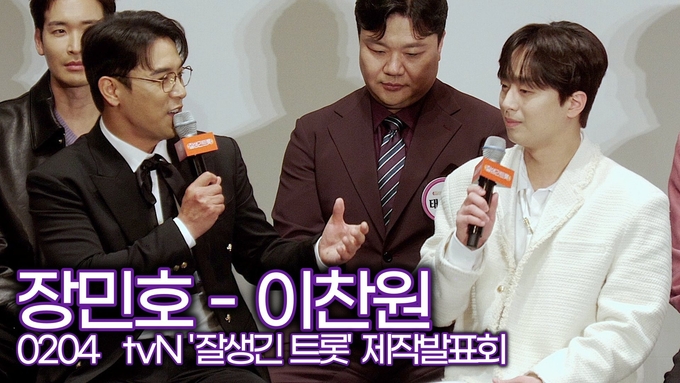 [뉴스인스타 양철수기자] 2월 4일(화) 오후, 서울시 구로구 신도림 라마다 서울 신도림호텔에서 tvN STORY '잘생긴 트롯' 제작발표회가 열려 MC 이찬원, 장민호와 추성훈, 장혁, 최대철, 인교진, 지승현, 정겨운, 태항호, 현우, 김동호, 이태리, 김준호, 한정완이 공통 인터뷰를 진행하고 있다.