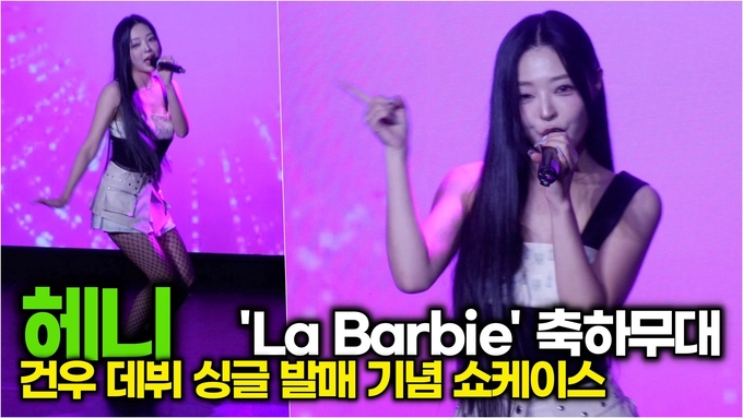 [뉴스인스타 양철수기자] 3월 10일(월) 오후, 서울시 마포구 서교동 가온스테이지에서 가수 건우의 솔로데뷔 싱글 ‘SHOT’ 발매 기념 미디어 쇼케이스에 소속사 선배 헤니가 참석해 'La Barbie' 축하무대를 선보이고 있다.