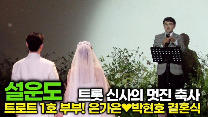 [뉴스인스타 양철수기자] 4월 12일(토) 오후, 서울시 강남구 청담동 한 예식장에서 트로트 1호 부부 은가은 ❤ 박현호 결혼식이 열려 트로트 대선배 설운도가 축사를 하고 있다.